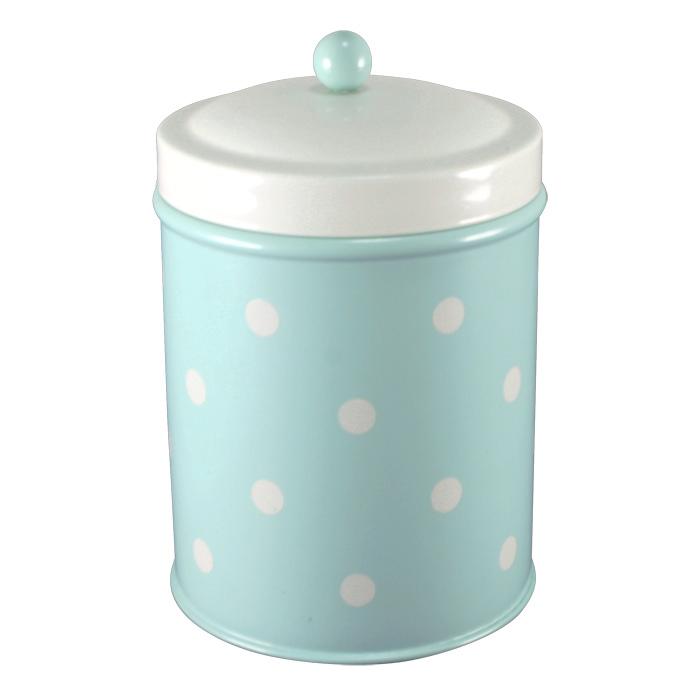 Jättefin plåtburk i mintgrönt med antikvita prickar och lock. Väldigt snygg i det lantliga köket - matcha gärna med vit/rosa prickig burk från samma märke!